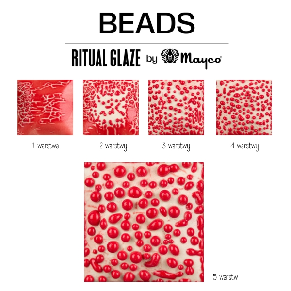 Szkliwo Bead to kamionkowe szkliwo strukturalne, które przy wypale w ok. 1220°C tworzy wypukłą, perełkową fakturę o zróżnicowanej wielkości.