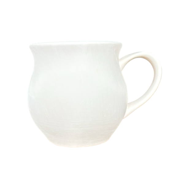 Biskwitowy kubek kamionkowy do samodzielnego malowania farbami podszkliwnymi lub zdobienia szkliwami kamionkowymi.