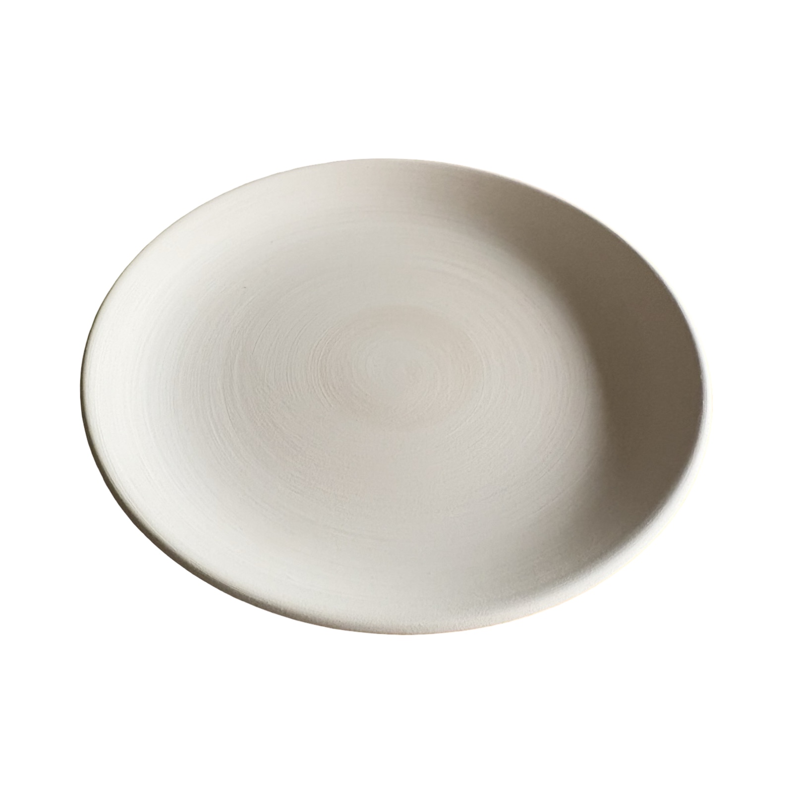 Biskwitowy talerz deserowy odlany z masy kamionkowej - do samodzielnego malowania farbami podszkliwnymi lub zdobienia szkliwami kamionkowymi.