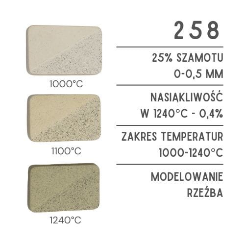 Zawartość drobnego szamotu czyni tę masę bardzo uniwersalną. Nadaje się zarówno do lepienia, jak i toczenia. Świetnie sprawdzi się jako glina dla osób początkujących i podczas pracy z dziećmi. Po wypaleniu ma jasny, ciepło biały kolor.