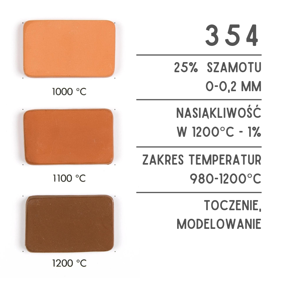 Zawartość drobnego szamotu czyni tę masę bardzo uniwersalną. Nadaje się zarówno do lepienia, jak i toczenia. Świetnie sprawdzi się jako glina dla osób początkujących i podczas pracy z dziećmi. Po wypaleniu ta glina ma czerwony kolor.