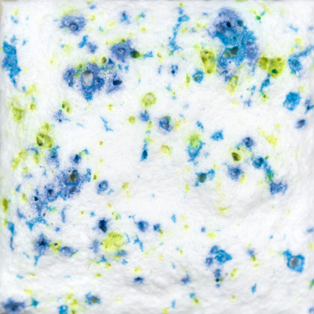 Szkliwo Berry Snow Gems daje efekt białej, strukturalnej powierzchni przywodzącej na myśl śnieg. W białym szkliwie bazowym zatopione są kolorowe kryształy: czerwone i fioletowe.